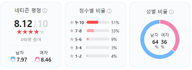 개인적으로 아주 쫄깃하게 재미있게 관람했고, 돈 값 충분히 하는 영화라고 생각합니다. 여느 전쟁영화 스토리와 비슷하지만, 너무 미화시키거나 과장하거나 액션에 치우치지 않았고, 딱 있는
